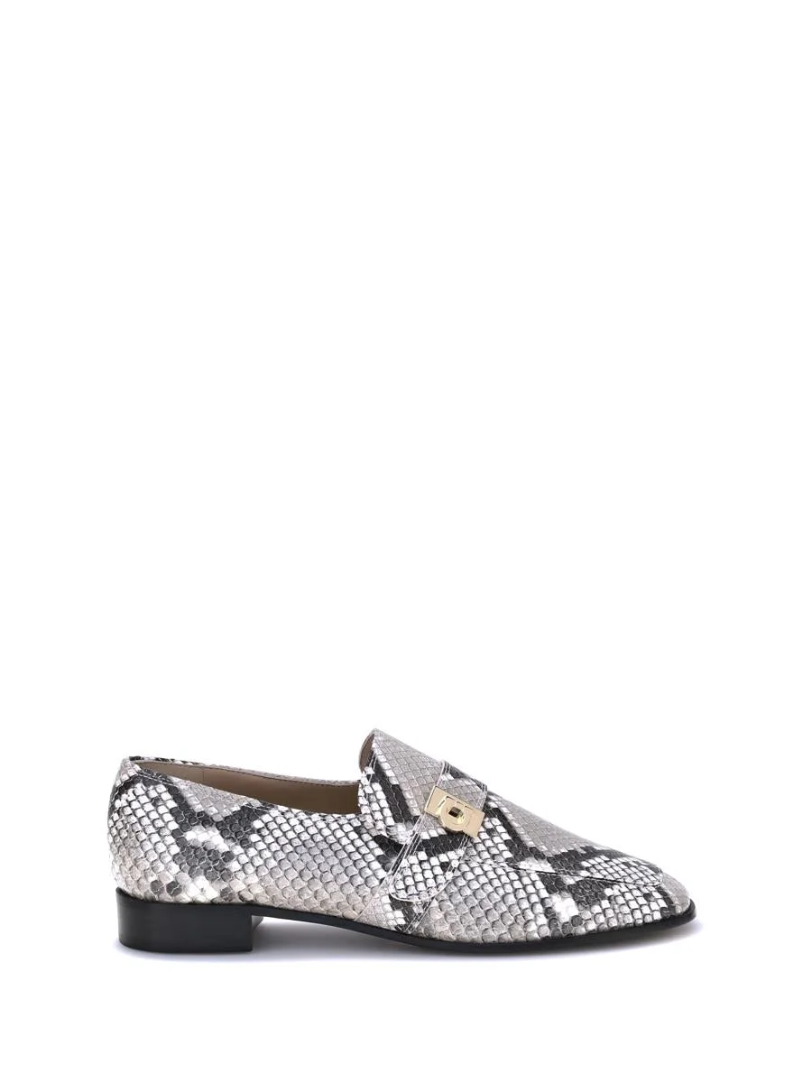 FERRAGAMO'S PYTHON-PRINT LEATHER LOAFERS ARE AN ELEGANT EXPRESSION OF STYLE AND PERSONALITY. FEATURING A SQUARED TOE AND A BLOCK HEEL THAT ENSURES STABILITY AND COMFORT, THEY STAND OUT FOR THE REFINED GOLD METAL DETAIL WITH ICONIC HOOK ON THE FRONT. A SOPHISTICATED MODEL, PERFECT FOR ADDING A BOLD TOUCH TO EVERYDAY LOOKS. SHOES US Gender: Women Material: GOATSKIN/HIRCUS GOATSKIN | CALF LEATHER BOS TAURUS Color: MULTICOLOUR Made in: Italy Product ID: 787071_002 *Import tax/duty will be calculated at checkout (If applicable)