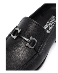 Black leather Gancini-plaque mocassin loafers from Salvatore Ferragamo featuring Gancini plaque, pebbled texture, almond toe, slip-on style and low block heel. Gender: Men Made in: Imported Product ID: 642848029392NERO *Import tax/duty will be calculated at checkout (If applicable)