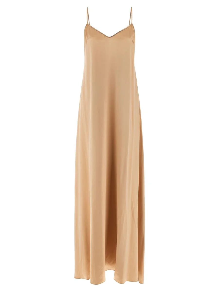Long dress in fluid viscose, V-neck, thin straps, sleeveless Gender: Women Material: 100% VISCOSE Color: Beige Made in: Italy Product ID: 788181NUDE *Import tax/duty will be calculated at checkout (If applicable)