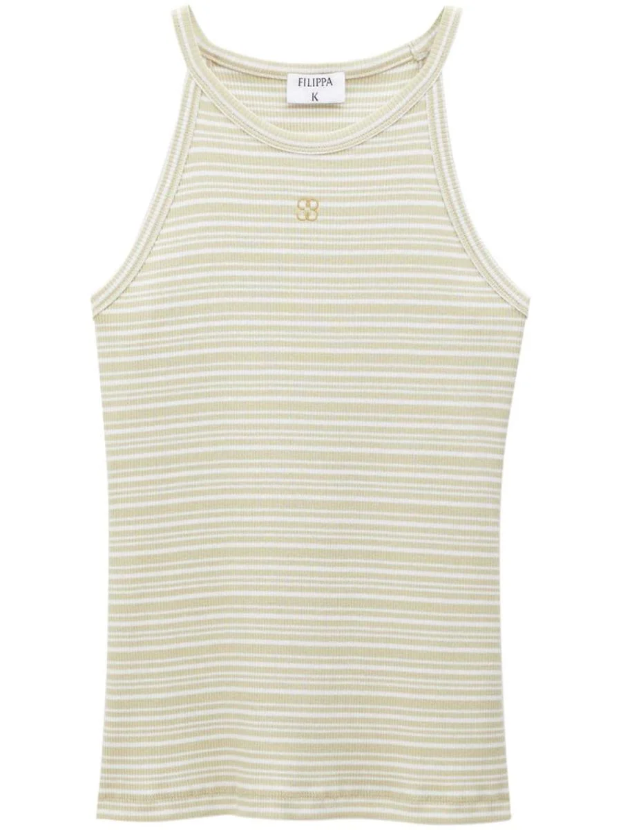 dark yellow/chalk white organic cotton fine ribbed horizontal stripe print embroidered monogram to the front halterneck sleeveless racerback straight hem This item is made from at least 50% organic materials. Learn more about what makes a product Conscious on our Conscious Criteria page This piece fits true to size. We recommend you get your regular size Model is 1,75m / 5ft 8in wearing size S Gender: Women Material: ORGANIC COTTON 100% Color: Beige Made in: Portugal Product ID: 304349961 *Import tax/duty will be calculated at checkout (If applicable)