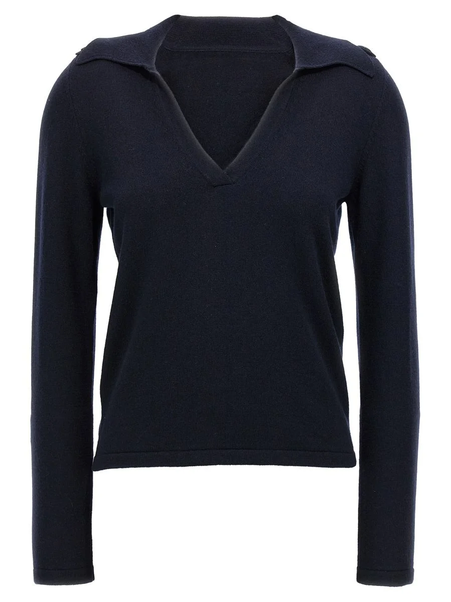 'Lou' polo shirt cashmere sweater with collar and V-neck, button detail on the shoulders, long sleeves Gender: Women Material: 100% CASHMERE Color: BLUE Made in: Italy Product ID: WLOU199450BLU *Import tax/duty will be calculated at checkout (If applicable)