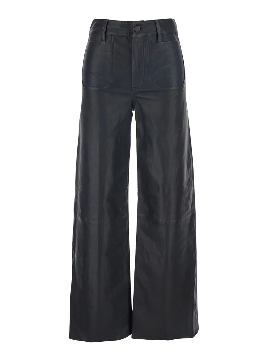 Frame 'Le Slim Palazzo' Black Pants With Belt Loops And Wide Leg In Leather Woman