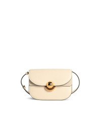 Adjustable and removable shoulder strap, flap closure with 'Sfera' closure, front pocket with suede coated flap, inner pouch pocket, inner zipper pocket\n16 x 13 x 6.5 cm Gender: Women Material: 100% CALFSKIN LEATHER Color: Beige Made in: Italy Product ID: WB01737 BX0428PNN00 *Import tax/duty will be calculated at checkout (If applicable)