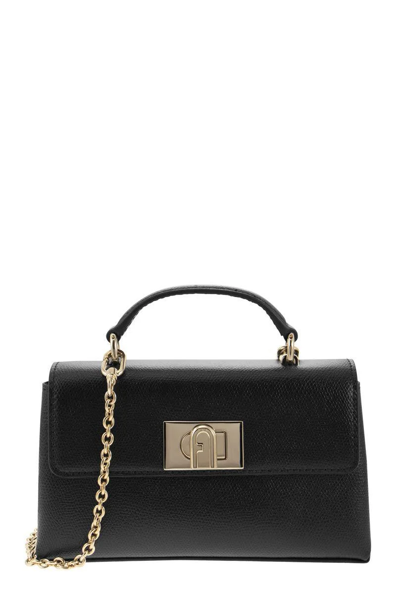 1927 mini black bag by Furla Foldover top Twist-lock fastening Main compartment Engraved logo to the front Top single handle Detachable chain-link shoulder strap Color: black Depth: 4cm Height: 10cm Width: 19cm 100% Leather Gender: Women Color: Black Made in: Imported Product ID: WE00423 ARE000 O6000 *Import tax/duty will be calculated at checkout (If applicable)