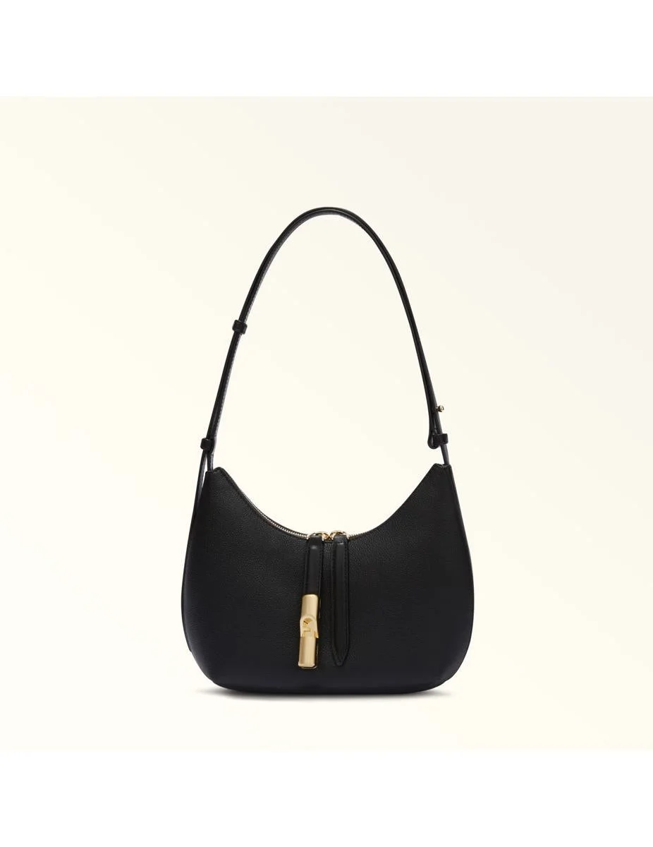 Adjustable shoulder strap, contrasting logo, double zip closure with metal medallion, single inner compartment, inner slit pocket, inside zip pocket\n26x20x5cm Gender: Women Material: 100% calfskin leather Color: Black Made in: KH Product ID: WB01500 BX3353O6000 *Import tax/duty will be calculated at checkout (If applicable)