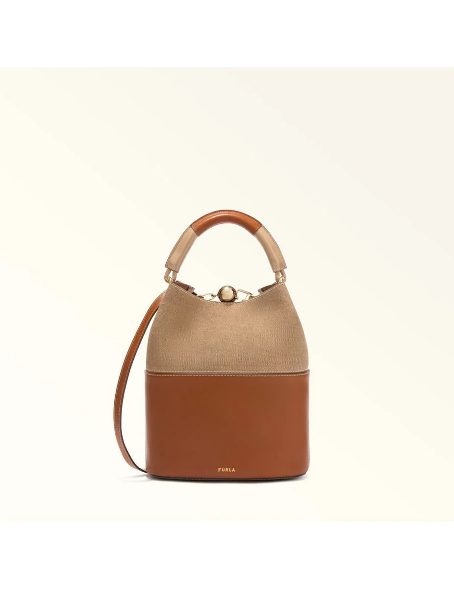 Leather bucket bag Cognac color Compact and spacious, perfect for everyday use Made of denim-effect suede Fully unlined for a lightweight design Closure with the iconic Sfera hardware Matching adjustable and removable leather shoulder strap Magnet closure Furla logo printed on the front Dimensions: Width 22 cm Height 28.5 cm Depth 13 cm Gender: Women Material: 100% LEATHER Color: Brown Made in: BERGAMO Product ID: WB01867 BX3924 4085S *Import tax/duty will be calculated at checkout (If applicable)
