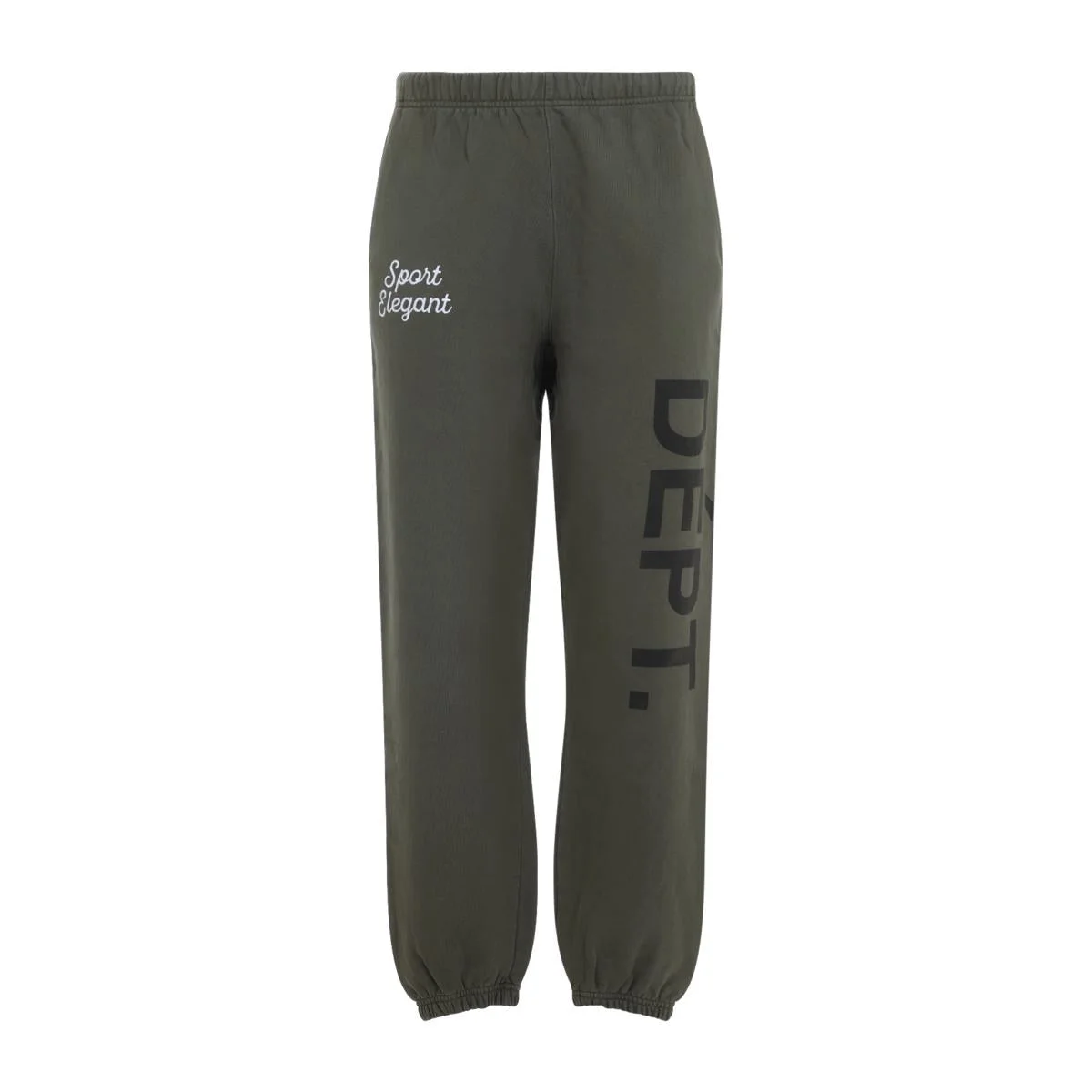 Gallery Dept. Faded Olive Green Cotton Team Dept Sweatpant. Pure faded olive green cotton sweatpants, elastic waistband, side contrasting white embroidered logo, side pockets, front black lettering logo, elastic hem. Gender: Men Material: 100%COTTON Color: GREEN Made in: Imported Product ID: TDS40072_ *Import tax/duty will be calculated at checkout (If applicable)