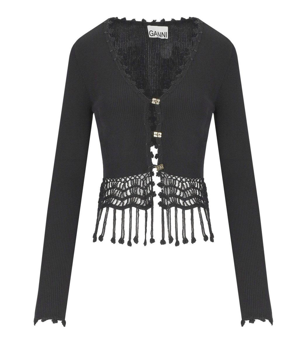 Ganni Black Crochet Cropped Cardigan