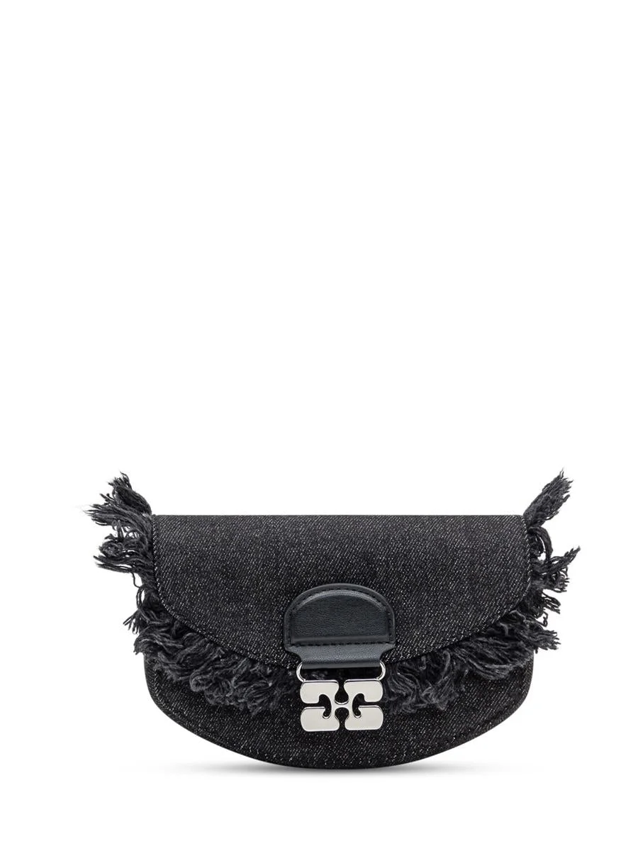 Black fabric bag. Flip top with magnetic closure. Adjustable and detachable shoulder strap. Logo plaque. Frayed hem. Width:18 Height:12 Depth:4 Gender: Women Material: 100% COTTON Color: Black Made in: Imported Product ID: A6911 099 *Import tax/duty will be calculated at checkout (If applicable)