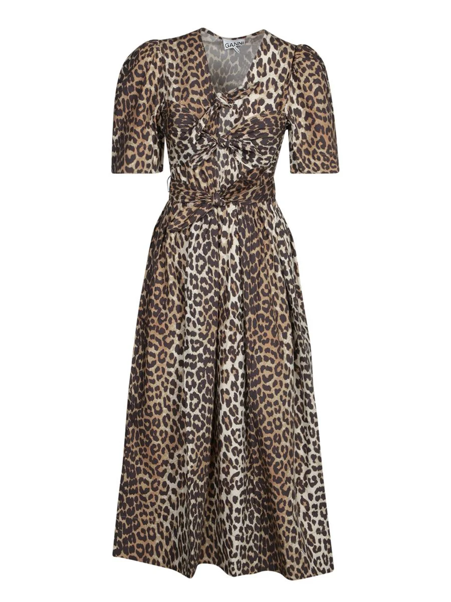 LEOPARD PRINTED COTTON TIE STRAP MIDI DRESS