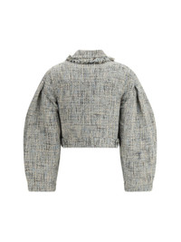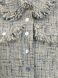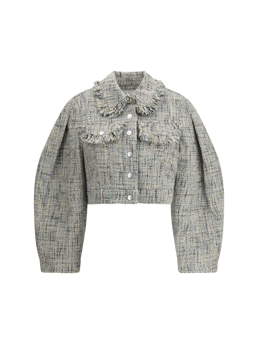 COTTON SUMMER JACKET BY GANNI, WITH A CROPPED CUT AND CONTEMPORARY CHARACTER. THE MODEL FEATURES A CLASSIC COLLAR ENRICHED WITH BANGS APPLIED ALONG THE PERIMETER, GIVING AN ORIGINAL AND DYNAMIC TOUCH. THE FRONT CLOSURE IS WITH BUTTONS, WHILE THE GARMENT IS COMPLETED WITH TWO SIDE WELT POCKETS AND TWO SLIT POCKETS WITH FLAP APPLIED ON THE FRONT. PERFECT FOR ENRICHING CASUAL LOOKS WITH A DISTINCTIVE DETAIL. RTW FR Gender: Women Material: COTTON Color: MULTICOLOUR Made in: Imported Product ID: W0512_693 *Import tax/duty will be calculated at checkout (If applicable)