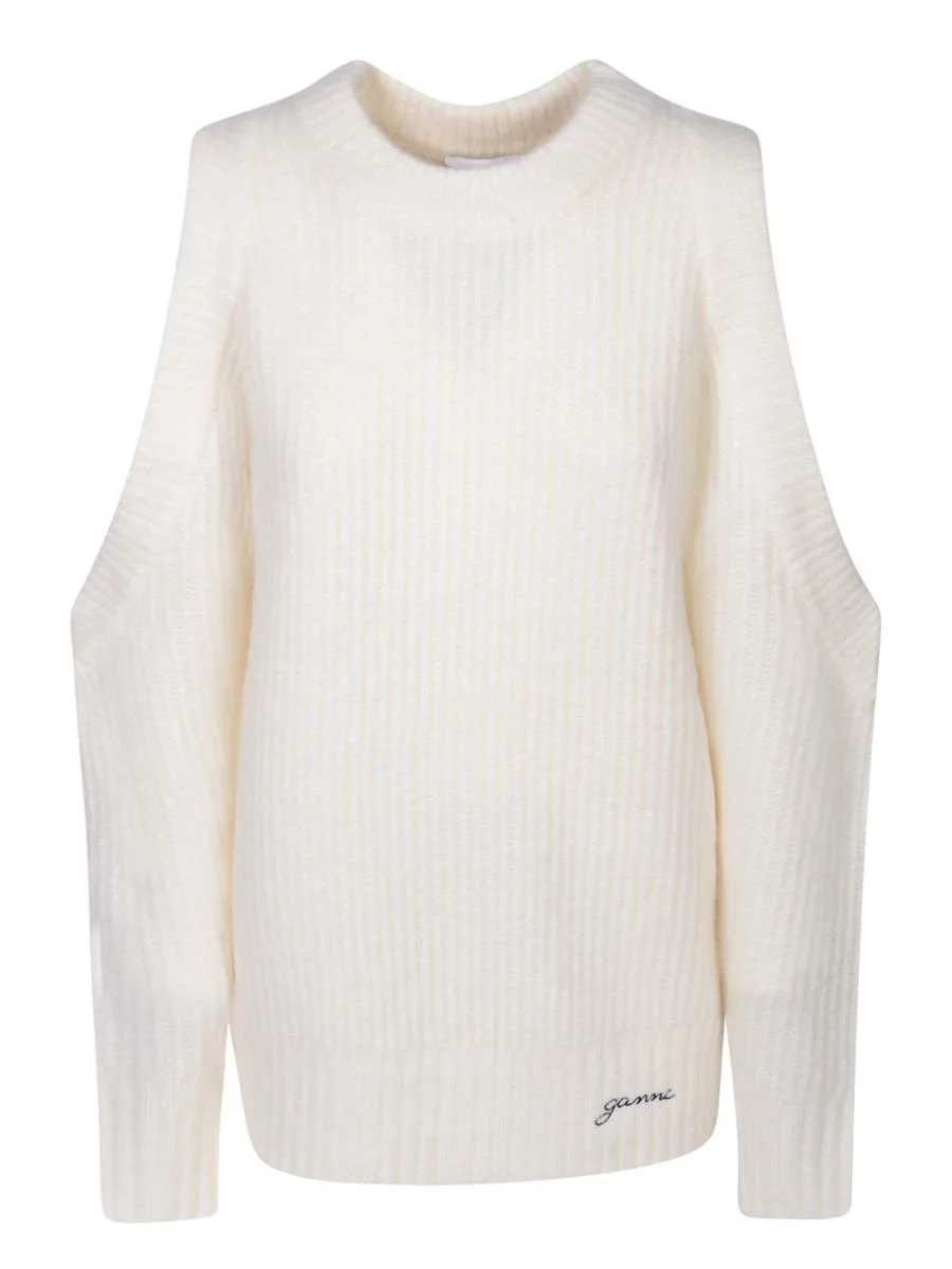 Ganni puts an irreverent twist on the classic jumper dress by adding exaggerated cold shoulder cut-outs along the arms Round neck. Knitted construction. Ribbed trim. Embroidered logo to the front. Cut-out detail. Color: ivory Material: 100% Organic Cotton Gender: Women Material: 100% ORGANIC COTTON Color: WHITE Made in: Imported Product ID: K1925 135 *Import tax/duty will be calculated at checkout (If applicable)