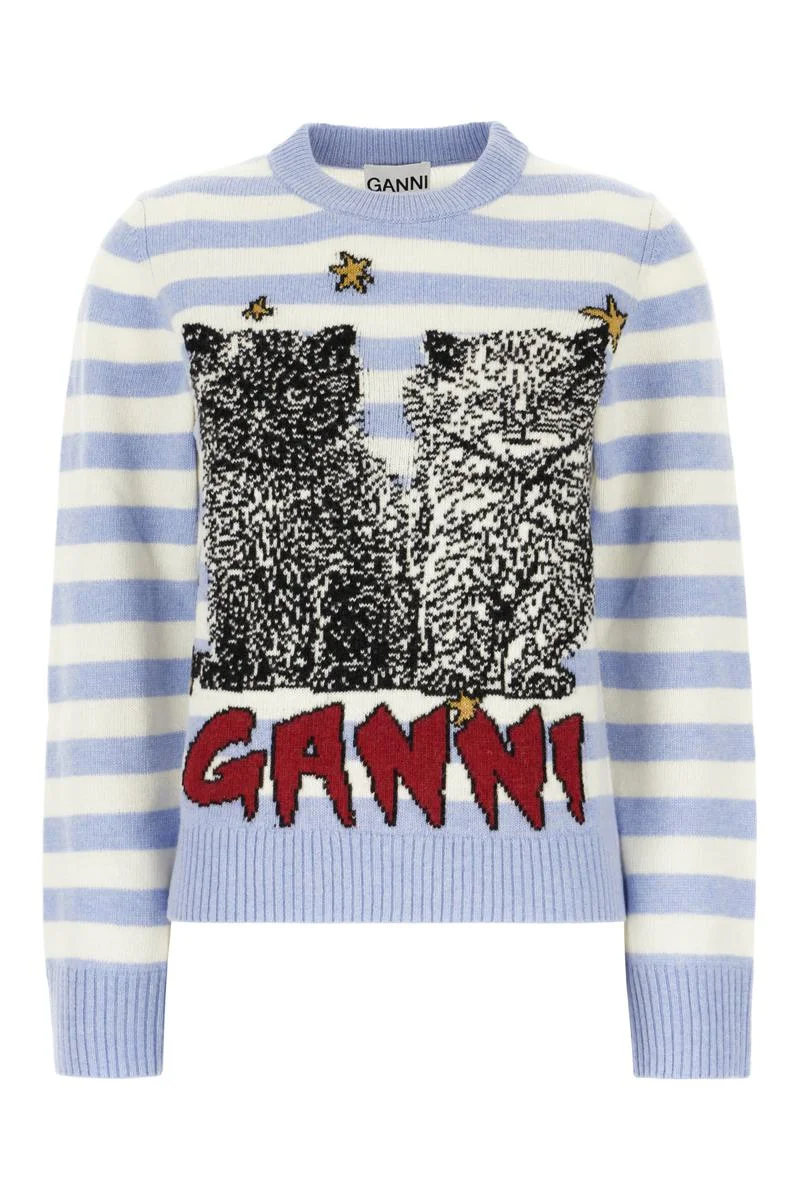 BLUE STRIPED GRAPHIC CAT SWEATER
