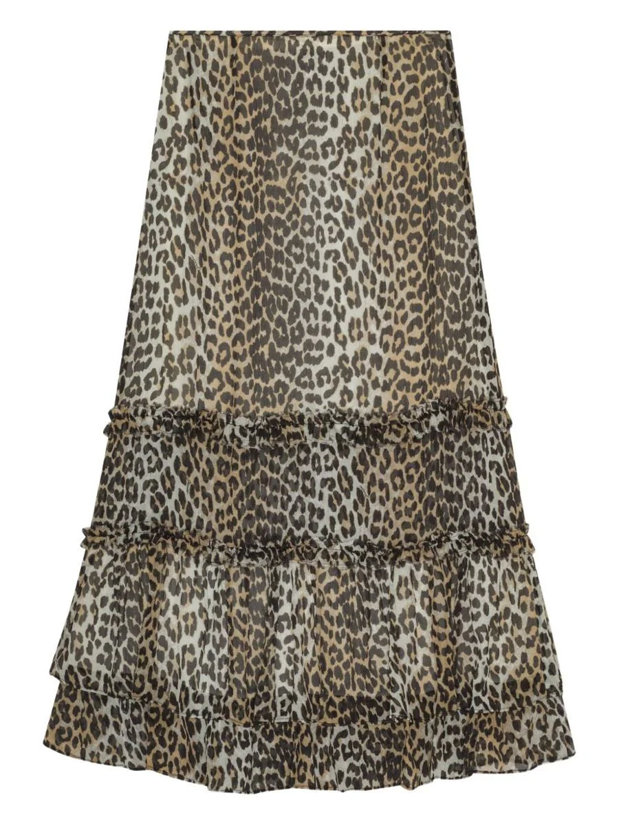 LEOPARD PRINT LONG CHIFFON RUFFLE SKIRT