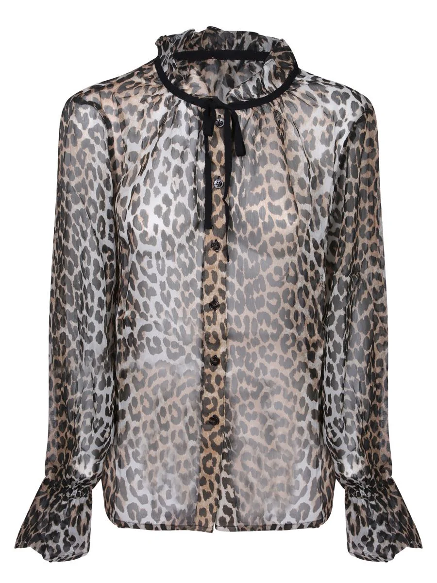LEOPARD PRINT CHIFFON TIE STRING SHIRT