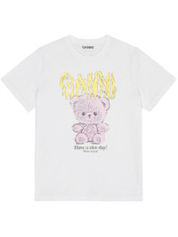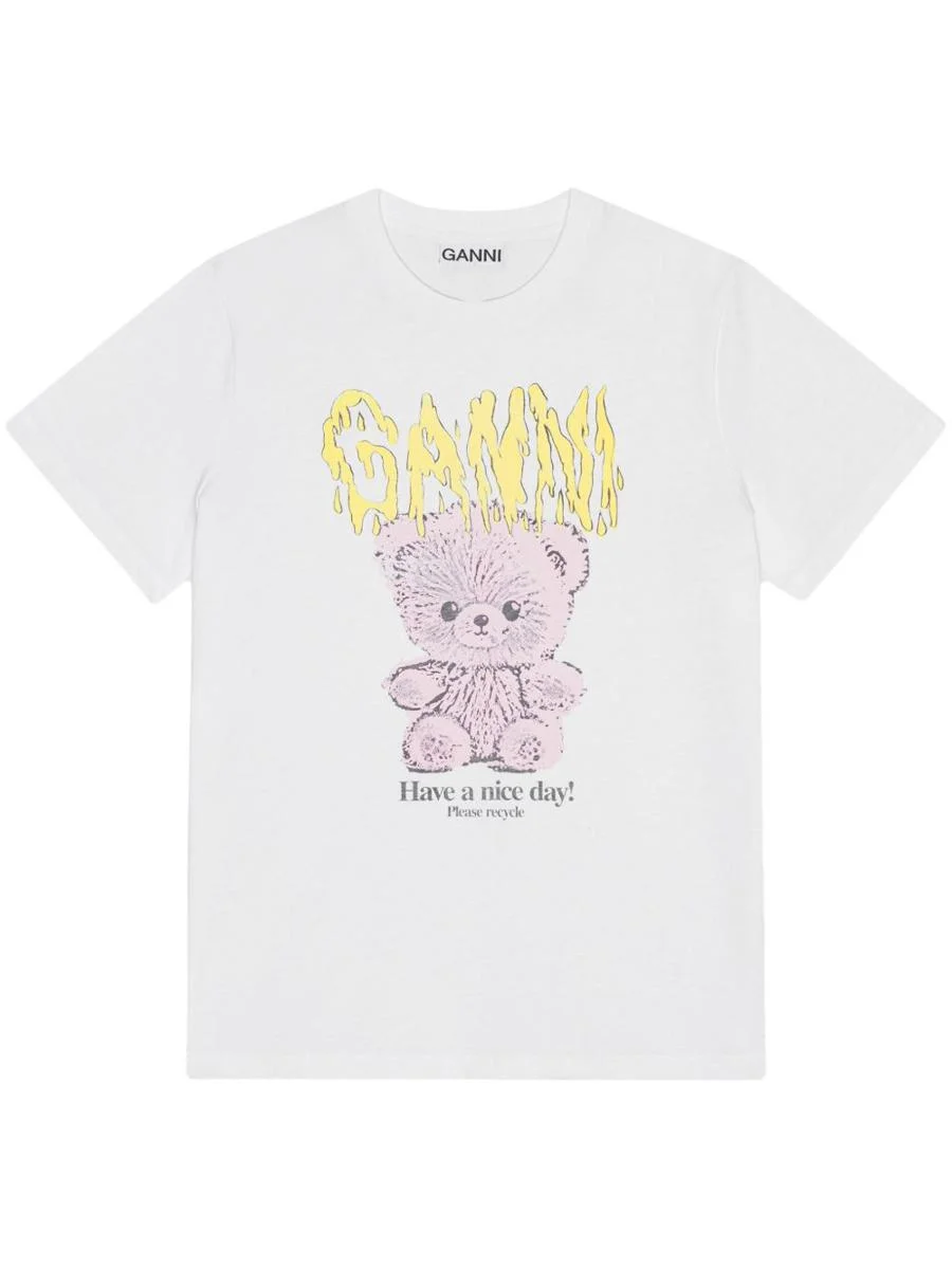 Ganni White T-Shirt, Teddy Print Logo On The Front, US SIZE Gender: Women Material: 100% ORGANIC COTTON Color: WHITE Made in: PT Product ID: T4289151 *Import tax/duty will be calculated at checkout (If applicable)