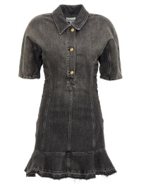 'Tint Edge' dress in stretch cotton denim with button neckline, short sleeves, tight and curled at the waist, frayed flounced hem Gender: Women Material: 99% COTTON, 1% ELASTANE Color: Black Made in: TR Product ID: J1539006 *Import tax/duty will be calculated at checkout (If applicable)