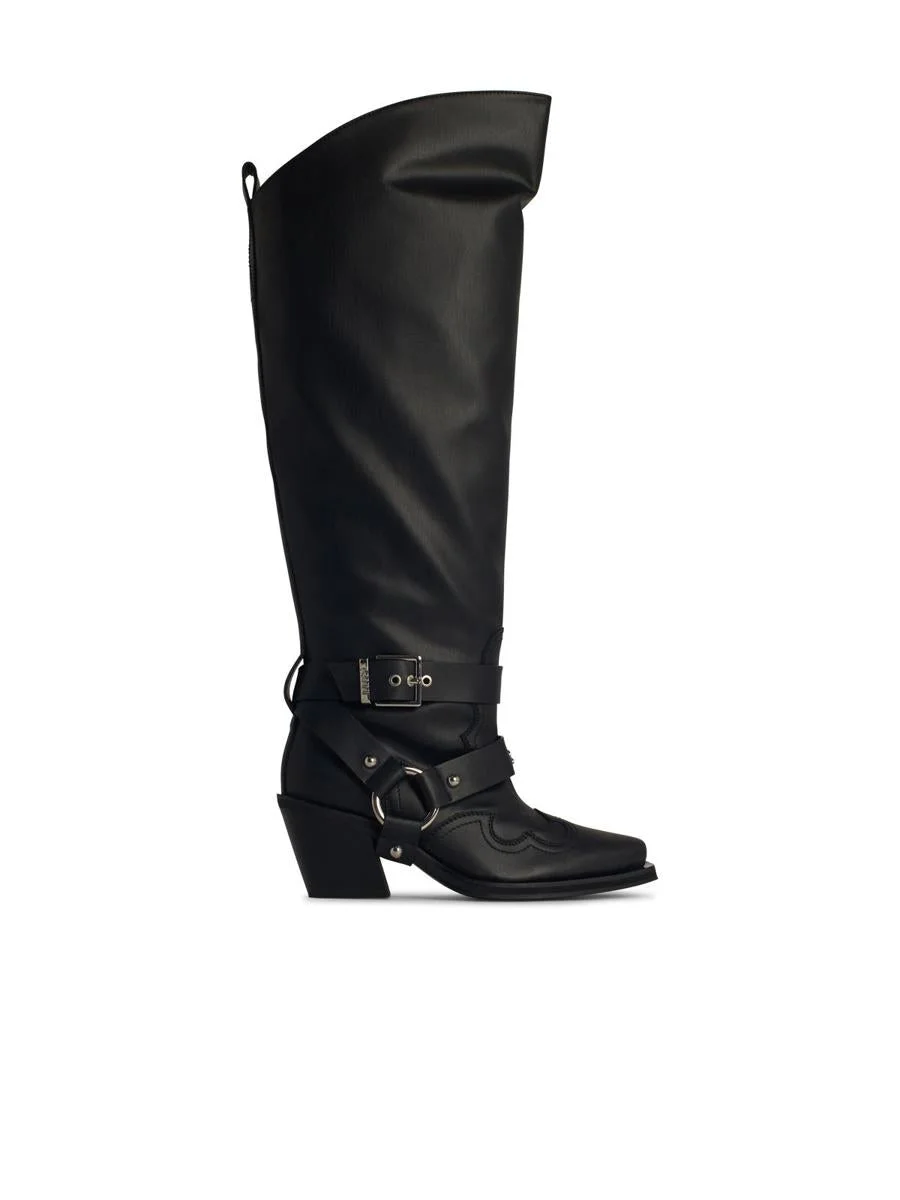 Ganni 'Western' Black Recycled Leather Blend Boots