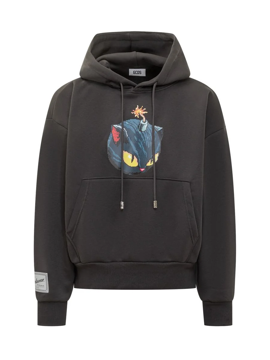 GCDS cotton sweatshirt with adjustable hood and pouch pocket. Cat Bomb graphic on chest. Gender: Men Material: 65% COTTON 35% POLYESTER Color: GREY Made in: Italy Product ID: B2CM1909JE6 95 *Import tax/duty will be calculated at checkout (If applicable)