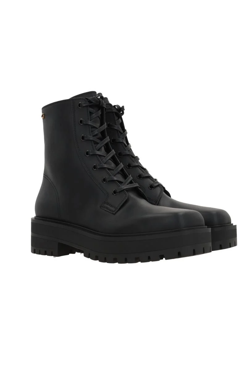 Gianvito Rossi's combat boots crafted in black smooth leather. Featuring lace-up / zip closure, a squared-toe silhouette, leather lining and rubber lug sole. Gender: Women Material: 100% CALF LEATHER Color: Black Made in: IT Product ID: G7307620GOMCLNNERO *Import tax/duty will be calculated at checkout (If applicable)