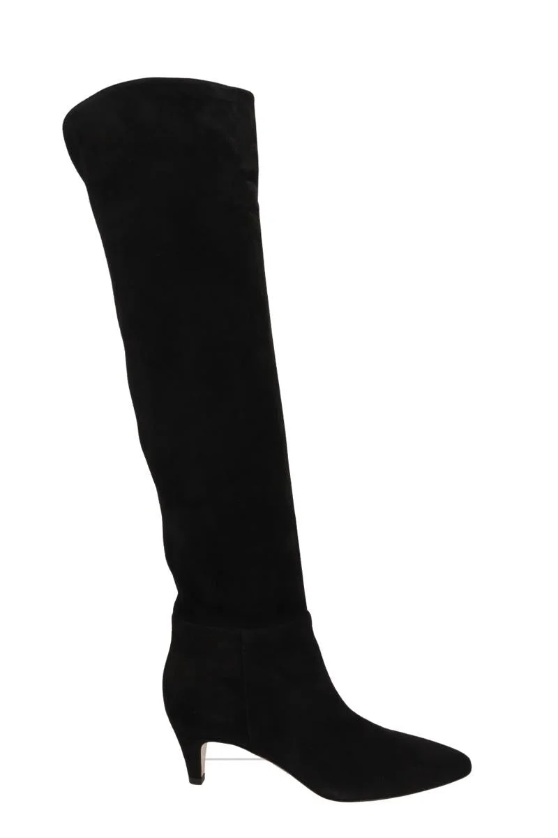 Gianvito Rossi over-the-knee boots made of black suede. Featuring an almond toe, leather lining, and leather sole. The design is completed by a covered mid heel. Gender: Women Material: 100% SUEDE LEATHER Color: Black Made in: Italy Product ID: G8013855RICC45NERO *Import tax/duty will be calculated at checkout (If applicable)
