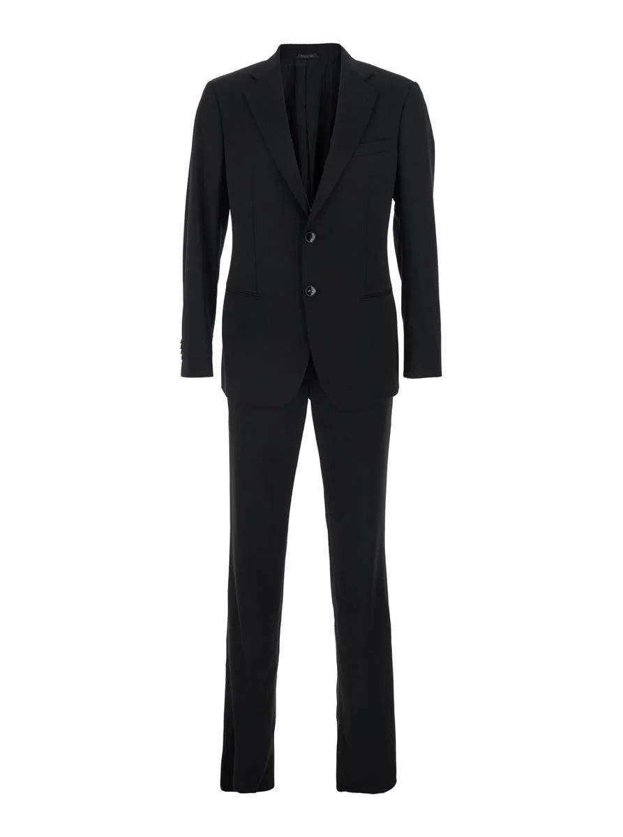 Giorgio Armani Black Single-Breasted Suit With Classic Lapels In Wool Man