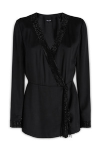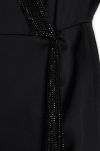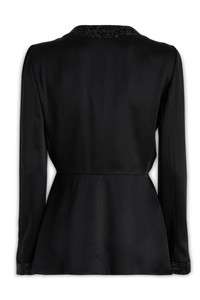 LONG SATIN JACKET WITH RHINESTONE AND CRYSTAL TRIM