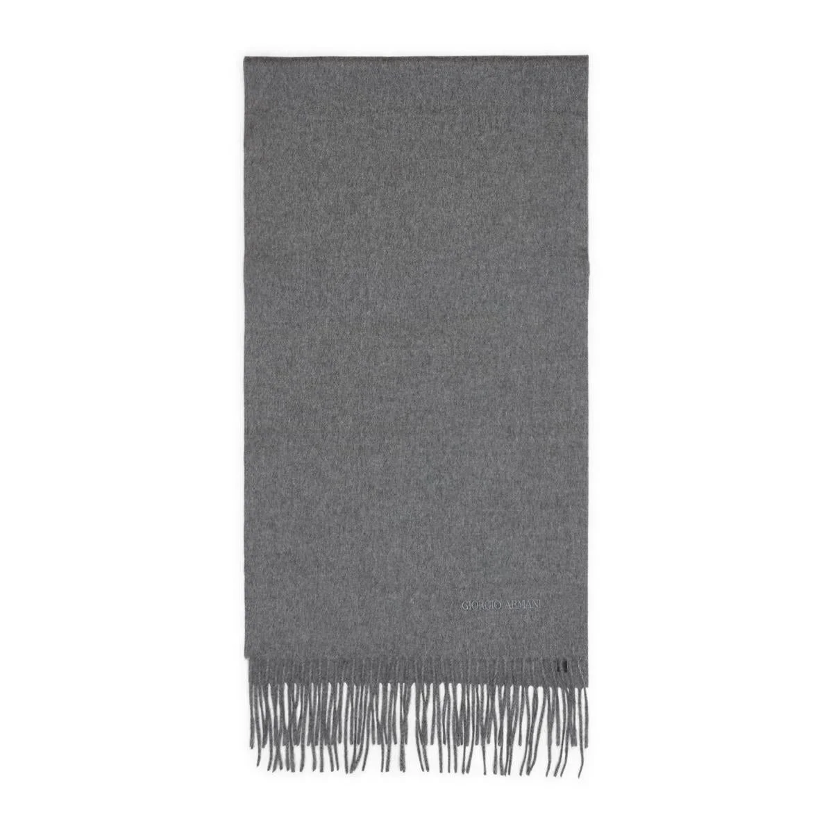 Giorgio Armani Grey Cashmere Scarf. Crafted from melange grey cashmere, embroidered logo at the hem, fringed edges. Measures: 35cm X 186cm Gender: Men Material: 100%CASHMERE Color: GREY Made in: Italy Product ID: GM001840.AF18586_8035 *Import tax/duty will be calculated at checkout (If applicable)