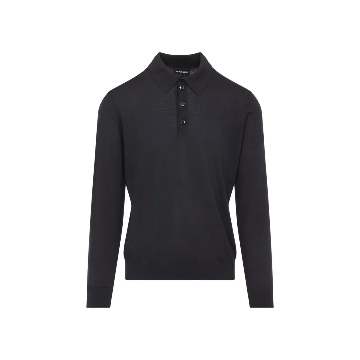Giorgio Armani Dark Grey Wool Sweater. Dark Grey Wool, long sleeves, polo collar, front button fastening, ribbed cuffs and waistband. Gender: Men Material: 100%VIRGIN WOOL Color: GREY Made in: Italy Product ID: 8NSF03.SM99Z_8168 *Import tax/duty will be calculated at checkout (If applicable)
