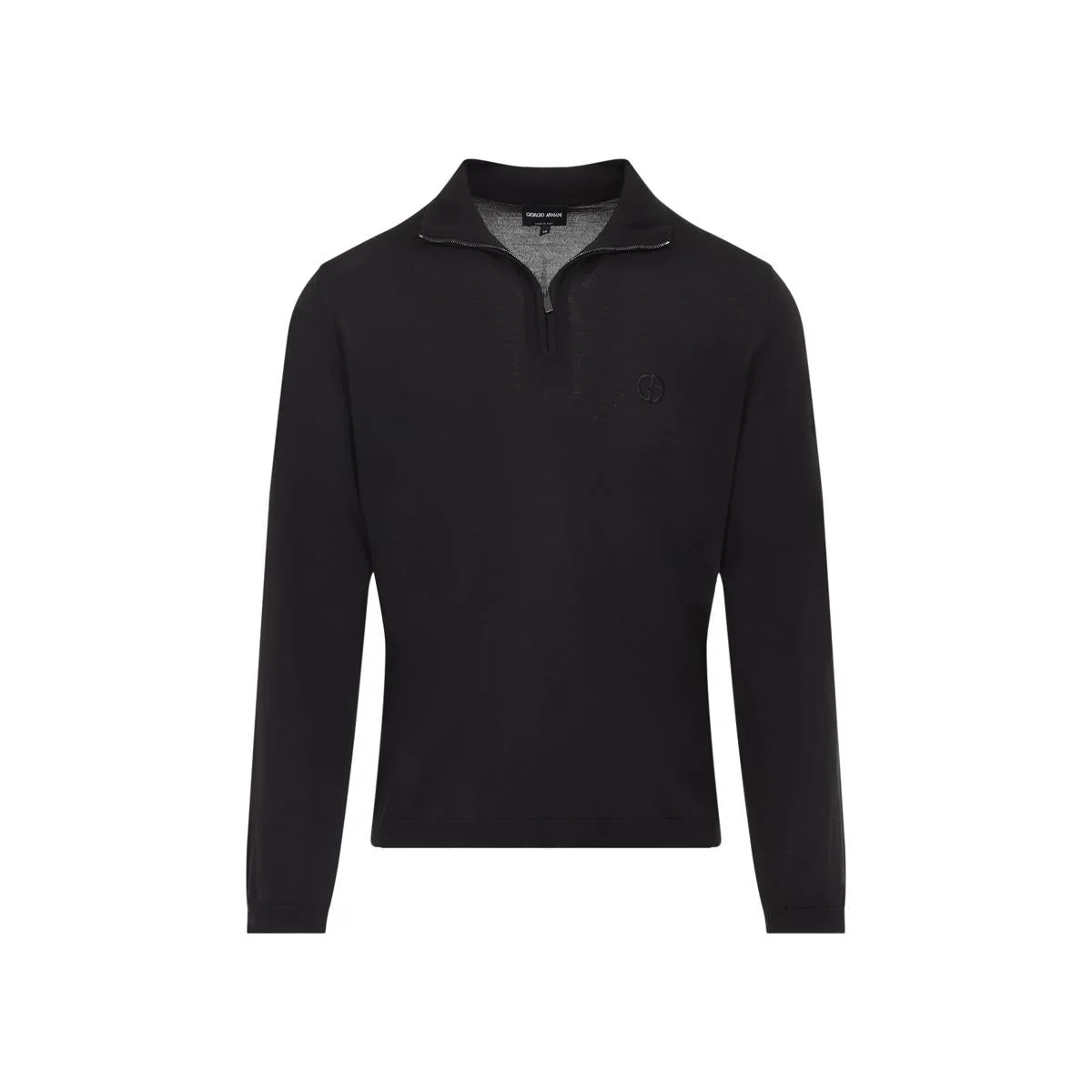 Giorgio Armani Mahogany Brown Virgin Wool Sweater. Pure mahogany brown virgin wool sweater. Pointed collar, front half zipped fastening, chest tonal embroidered logo, long sleeves, straight hem. Gender: Men Material: 100%VIRGIN WOOL Color: BROWN Made in: Italy Product ID: GM001955.AF19068_6280 *Import tax/duty will be calculated at checkout (If applicable)