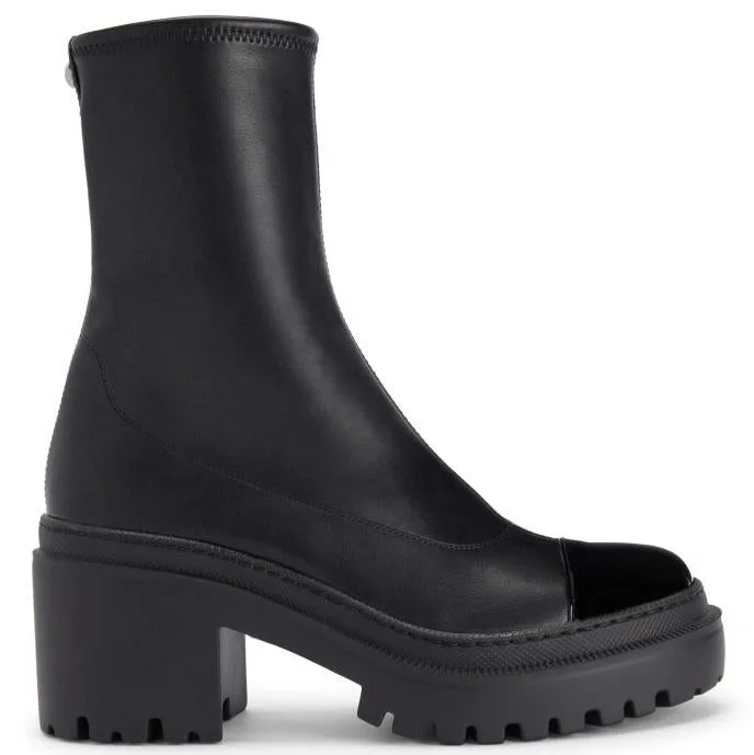 Giuseppe Zanotti black Vicentha booties, stretch model, leather upper, round toe, Heel: 7 cm Gender: Women Material: 50%LEATHER,50%FABRIC,RUBBER SOLE Color: Black Made in: IT Product ID: I470002001 *Import tax/duty will be calculated at checkout (If applicable)