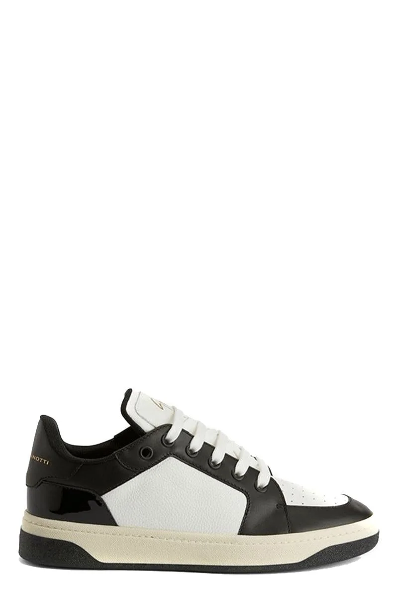 Low-top sneaker in white leather and black leather and patent leather, with cotton laces and matching rubberized eyelets, characterized by the gold-coloured 'Signature' detail hot-stamped on the tongue, by the gold-coloured 'Logo Lettering' printed on the rear part of the upper and completed by an off-white rubber sole with black tread. Gender: Men Material: SKIN Color: WHITE Made in: IT Product ID: RM40010002 *Import tax/duty will be calculated at checkout (If applicable)
