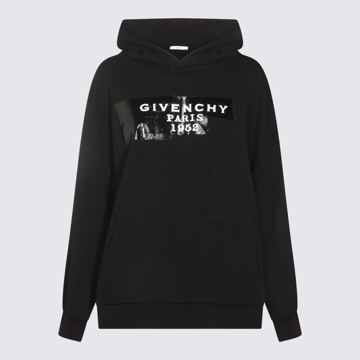 Black cotton sweatshirt from Givenchy featuring hood, long sleeves, print to the front and regular vestibility. Size Type: AMERICA Gender: Women Material: 100 % COTTON Color: Black Made in: Portugal Product ID: BWJ04TP78U001 *Import tax/duty will be calculated at checkout (If applicable)