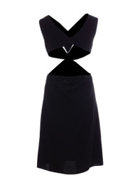 CUT OUT DRESS IN CREPE SATIN WITH RHINESTONES DETAIL