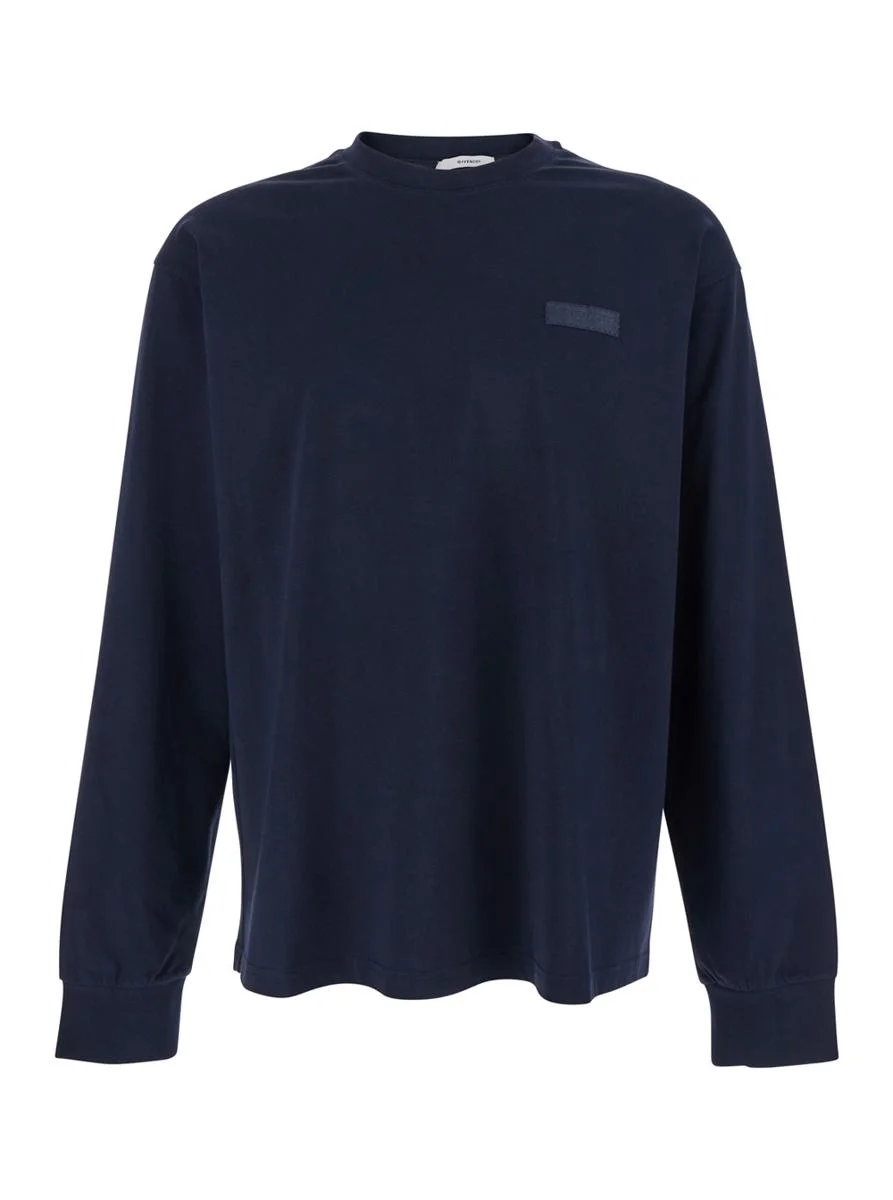 Givenchy Blue Long-Sleeved T-Shirt With Chest Logo Patch In Cotton Man