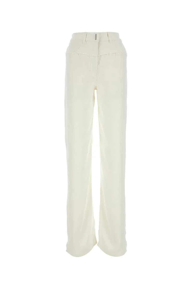 Ivory viscose and denim jeans Gender: Women Material: EXTERIOR: 100% VISCOSE 99% COTTON 1% ELASTANE Color: WHITE Made in: IT Product ID: BW50WG5Y6G 100 *Import tax/duty will be calculated at checkout (If applicable)