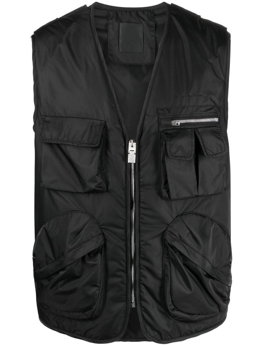 cargo pockets gilet from GIVENCHY featuring black, V-neck, front zip fastening, sleeveless and multiple patch pockets. This piece fits true to size. We recommend you get your regular size Model is 1,84m / 6ft 1in wearing size 48 (IT) Gender: Men Material: MAIN MATERIAL : 100 % POLYESTER Color: BLACK Made in: BG Product ID: BM00Z613YT001 *Import tax/duty will be calculated at checkout (If applicable)