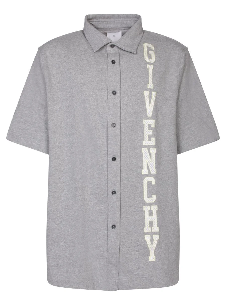 Short sleeves. Classic collar. Front button closure. Longitudinal Givenchy logo. This grey Givenchy shirt perfectly blends casual elegance with distinctive style. The minimalist design is enhanced by the embossed vertical logo running down the front panel, adding a uniquely luxurious touch. Gender: Men Material: 100% COTTON Color: GREY Made in: Imported Product ID: BM611J 1YGT 055 *Import tax/duty will be calculated at checkout (If applicable)