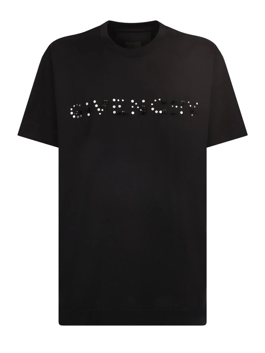 Cotton t-shirt Jersey knit Stud detailing Crew neck Short sleeves Straight hem Color: Black Cotton 100% Gender: Men Color: Black Made in: Imported Product ID: BM717L 3Y6B 001 *Import tax/duty will be calculated at checkout (If applicable)