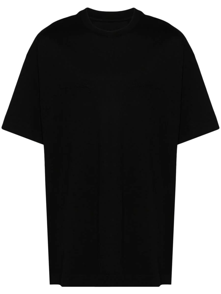black cotton lightweight jersey embossed logo to the front crew neck short sleeves unlined straight hem Gender: Men Material: COTTON 100% Color: Black Made in: PT Product ID: BM71JA3YP1 001 *Import tax/duty will be calculated at checkout (If applicable)