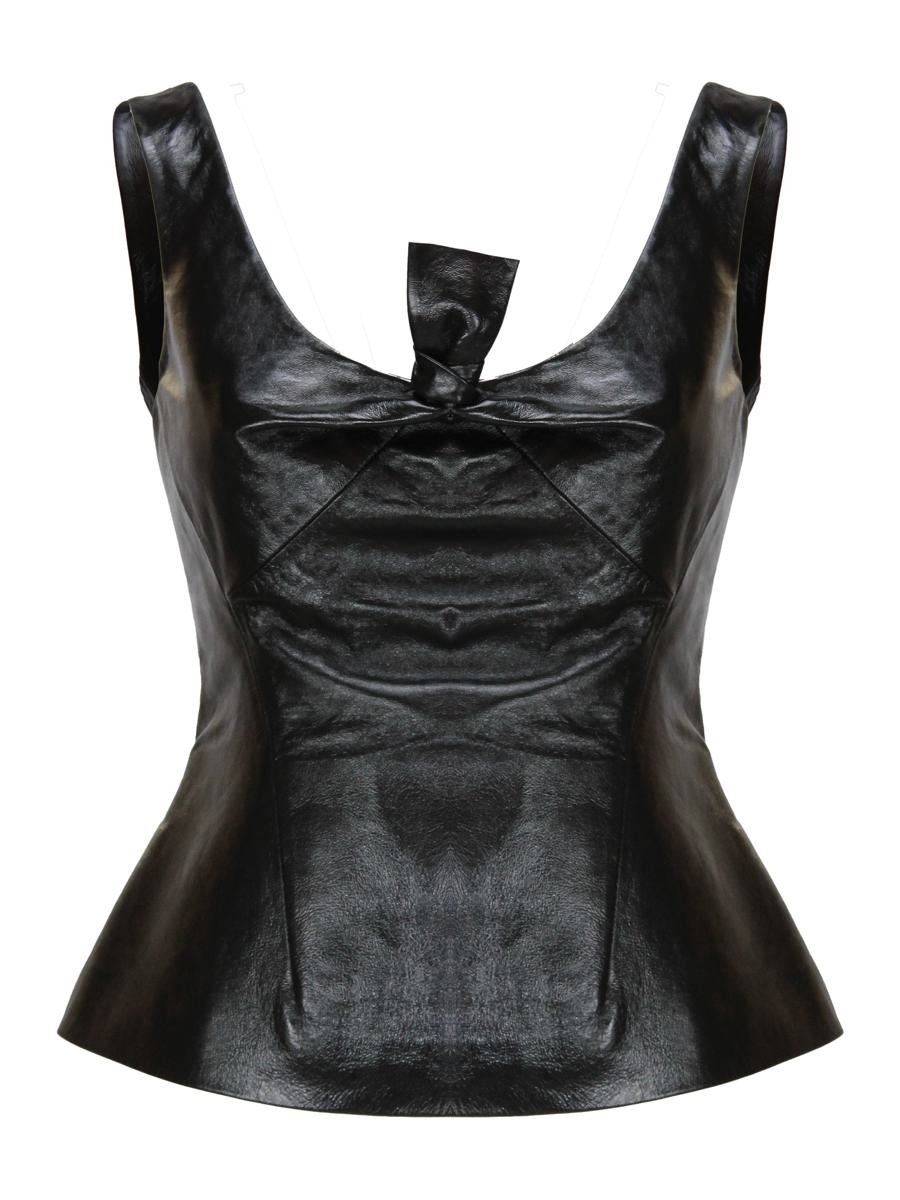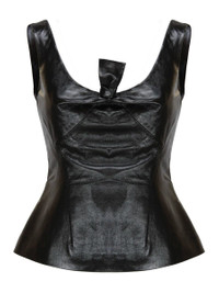 PEPLUM TOP IN LEATHER WITH BOW DETAIL
