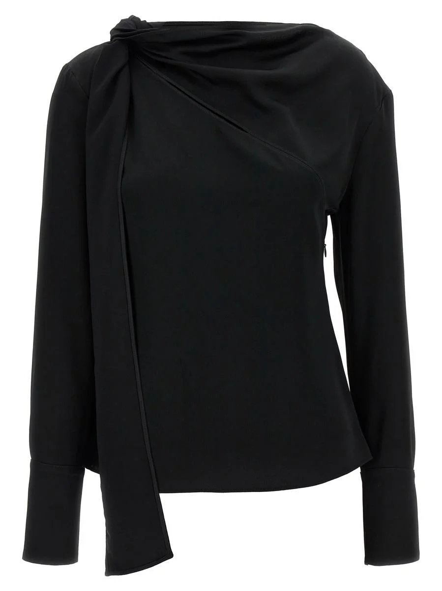Viscose blend blouse with adjustable sash at the neck, side zip closure, long cuffed sleeves Gender: Women Material: 61% VISCOSE, 39% ACETATE Color: Black Made in: IT Product ID: BW61CR14N6001 *Import tax/duty will be calculated at checkout (If applicable)