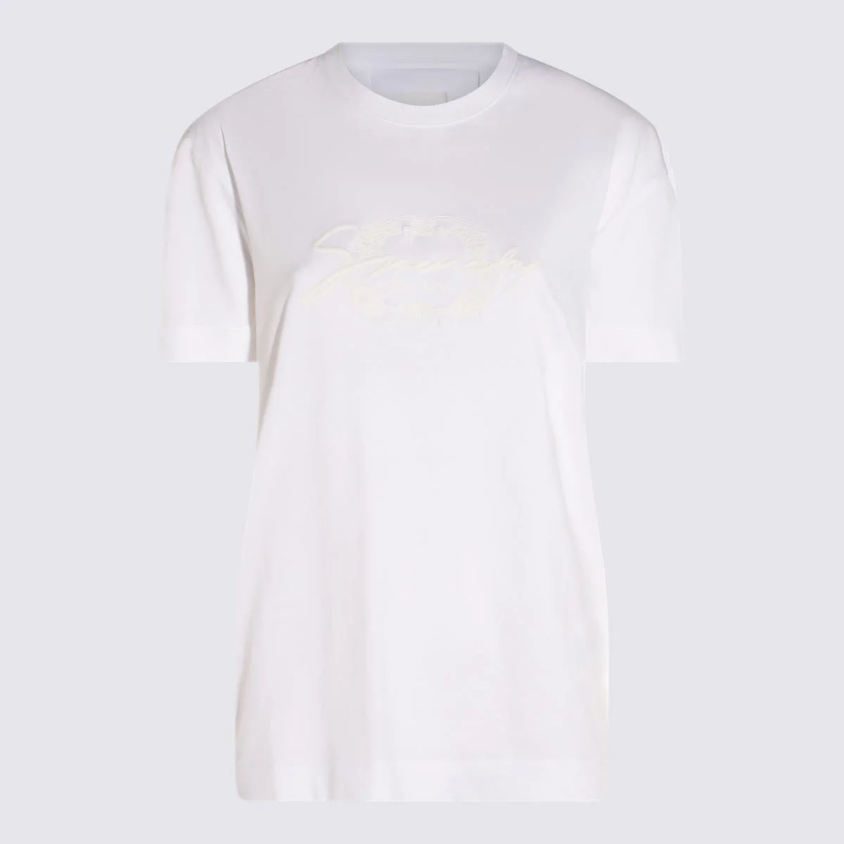 White cotton t-shirt from Givenchy featuring short sleeves, round collar, frontal logo and regular vestibility. Size Type: AMERICA Gender: Women Material: 100%COTTON Color: WHITE Made in: IT Product ID: BW70EKGYPV100 *Import tax/duty will be calculated at checkout (If applicable)