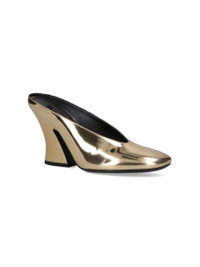 SCULPTED HEELED MULES IN MIRROR EFFECT LEATHER