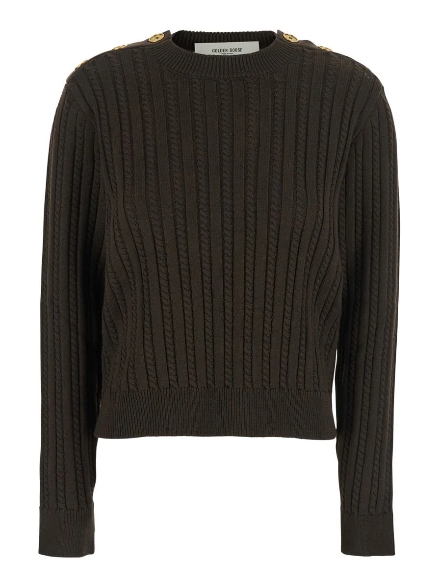 Sweater Brown Round neck Long sleeves Knitted fabric Buttons on the shoulders Logo on the back Ribbed hem and cuffs Wool Regular fit Gender: Women Material: VIRGIN WOOL 90% POLYAMIDE 10% Color: BROWN Made in: Italy Product ID: GWP02467P00211090108 *Import tax/duty will be calculated at checkout (If applicable)
