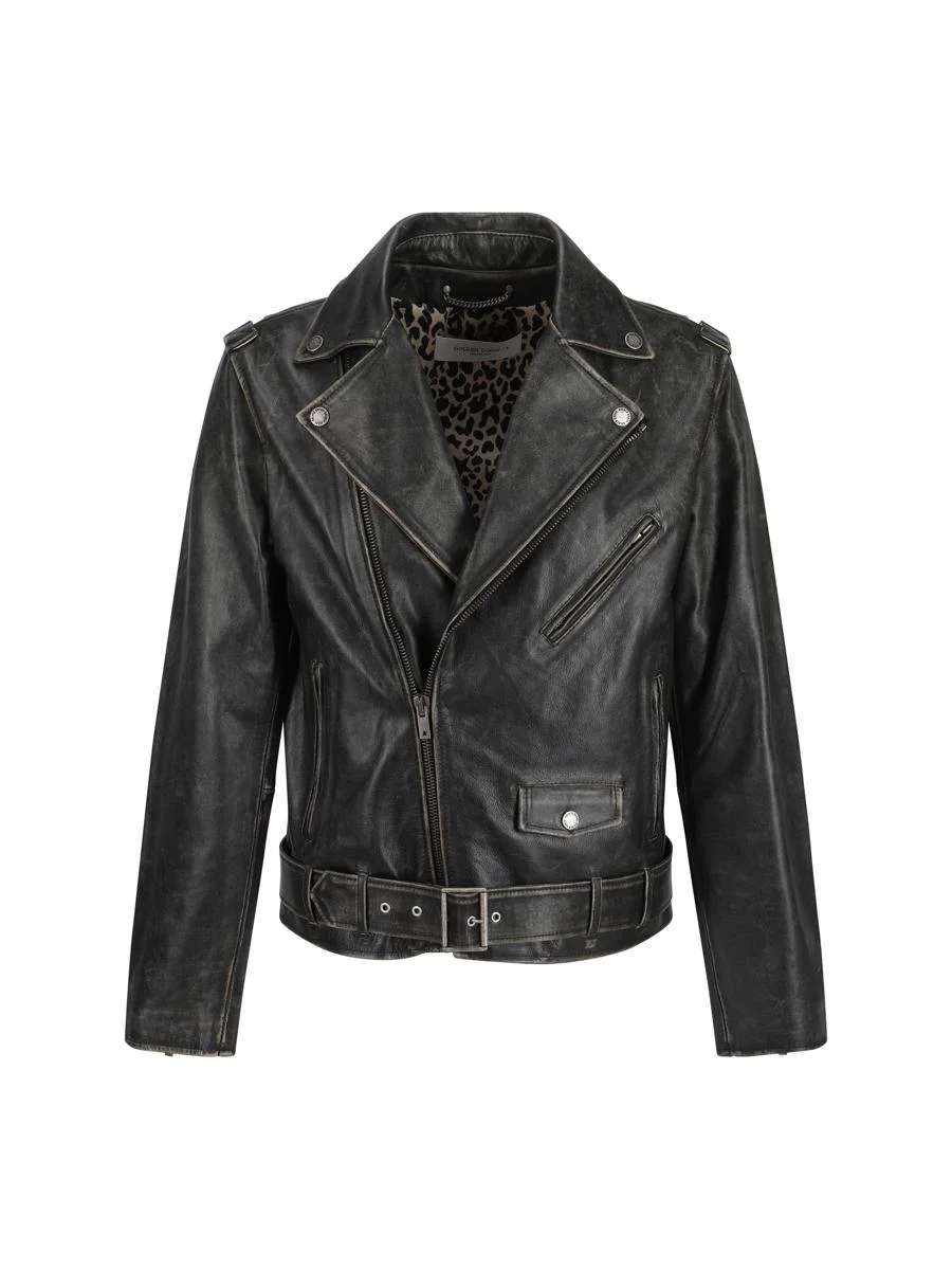 Vintage effect leather biker jacket Gender: Men Material: COLLAR WITH LAPEL AND PRESS STUDS % ASYMMETRIC ZIP CLOSURE AND THREE POCKETS % ADJUSTABLE BELT WITH METAL BUCKLE % MADE IN ITALY % LEATHER % Color: BLACK Made in: IT Product ID: GMP00297P000647_90100 *Import tax/duty will be calculated at checkout (If applicable)