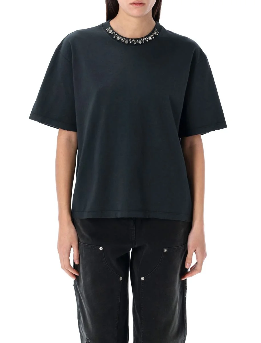 Cotton Crystals t-shirt by Golden Goose. Featuring: Ribbed crew neck Cabochon crystal decoration at the neckline Short sleeves Double gold star on the back Boxy fit Distressed effect Model is 1,70 m and wears size S Gender: Women Material: 100% COTTON Color: WASHED BLACK Made in: Italy Product ID: 25AGWP01874P001897#90456 *Import tax/duty will be calculated at checkout (If applicable)