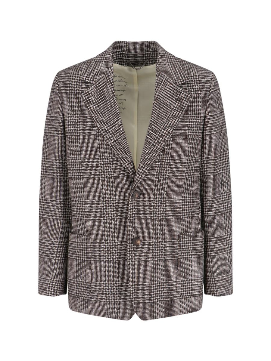 Gray single-breasted blazer for men in houndstooth wool