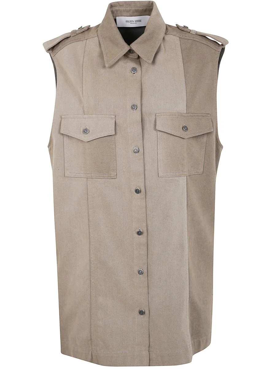 Golden Goose "Journey W'S" Osanne Shirt Dress Sleeveless Cotton Denim Full Sly Wash Clothing