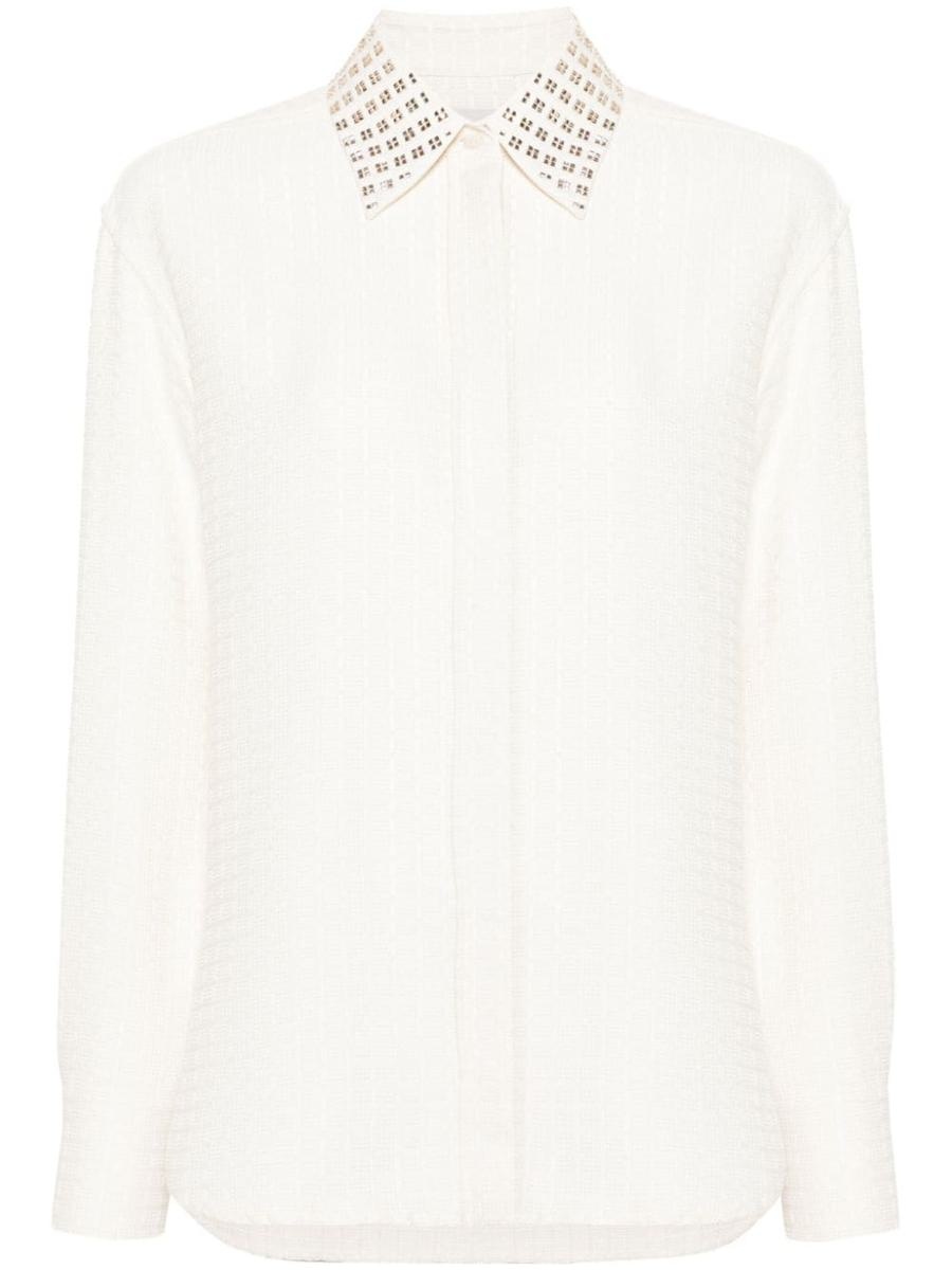 Women's viscose and cotton blend shirt with crystal-embellished collar